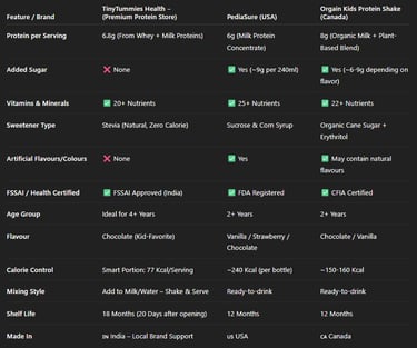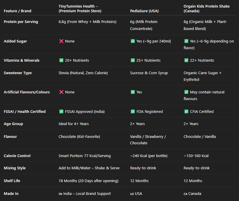 Our Kids Nutrition Drink Mix (by Premium Protein Store) against top U.S./Canada brands like PediaSure and Orgain Kids Protein Shake: